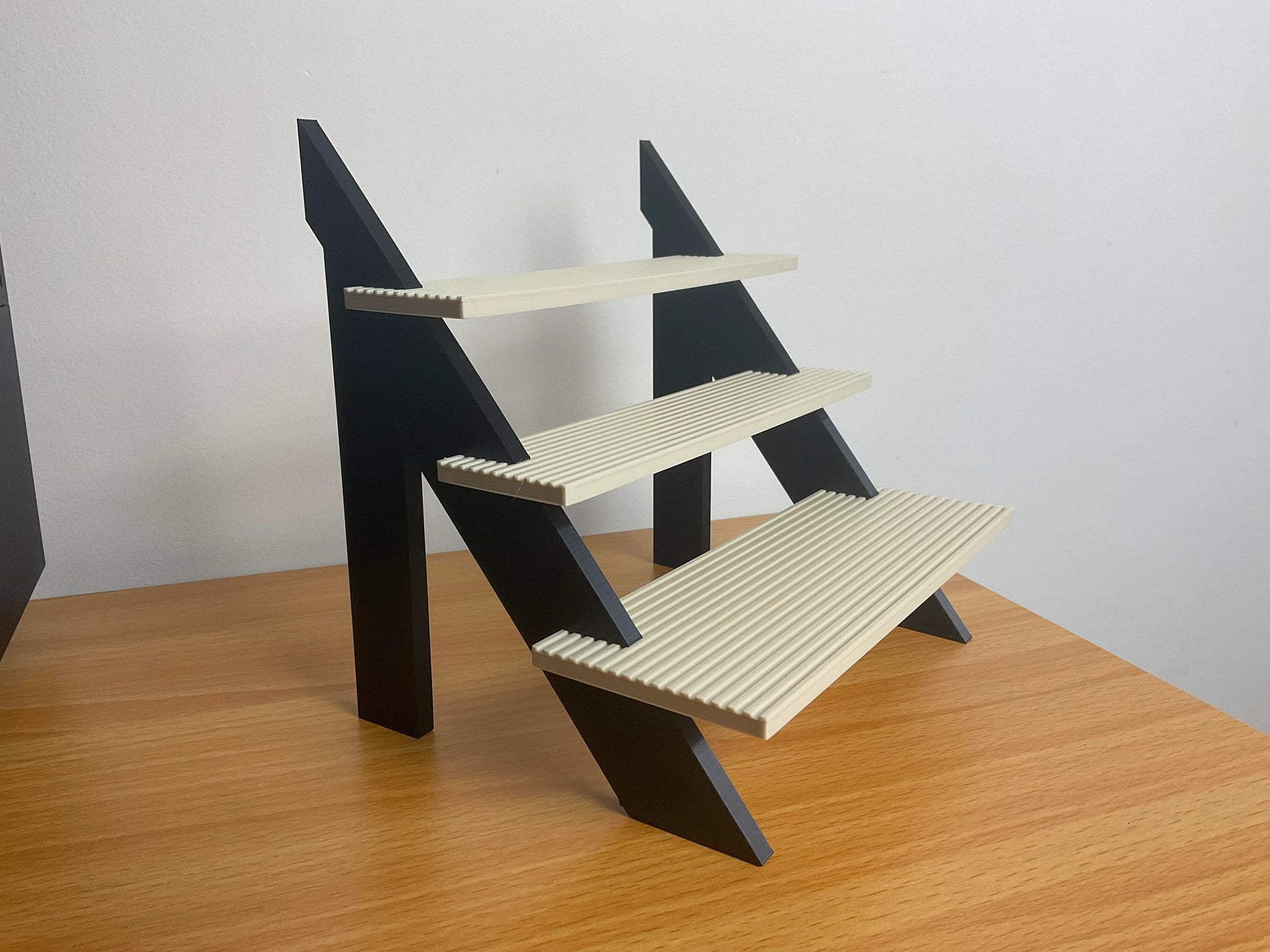 Oplev vores håndlavede 3D-printede displaytrappe, perfekt til visning af dine produkter eller kreative projekter. Denne lille, elegante trappe har tre trin og er designet til at fremhæve dine genstande på en stilfuld måde. Med en højde på 18 cm, en dybde på 15 cm og en bredde på 20 cm er den ideel til butiksvinduer, messer eller hjemmebrug. Lavet af holdbart materiale, sikrer denne displaytrappe en stabil base til dine varer, samtidig med at den tilføjer et moderne præg til din præsentation. Giv dine produkter den opmærksomhed, de fortjener, med denne unikke og funktionelle displaytrappe.